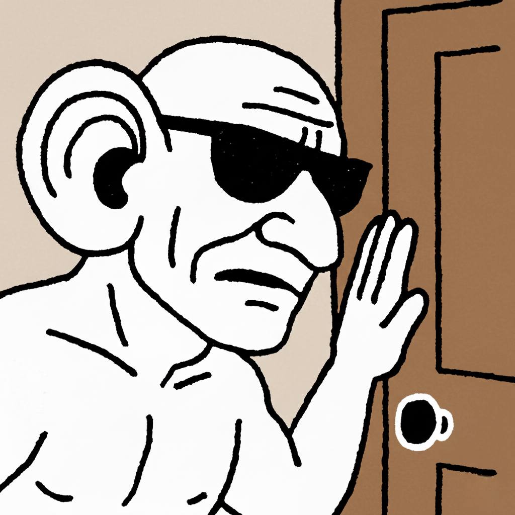 Hearing is a hand drawn cartoon character recognizable by his large curved ears,