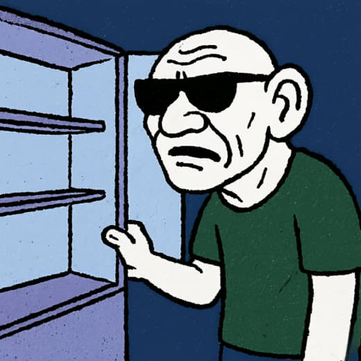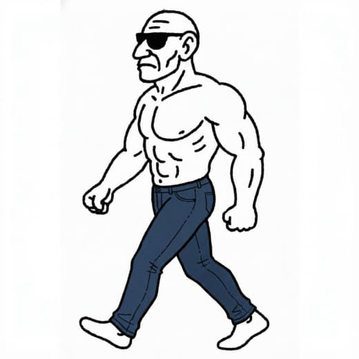 black sunglasses, and snow white skin. He appears in intentionally scuffed