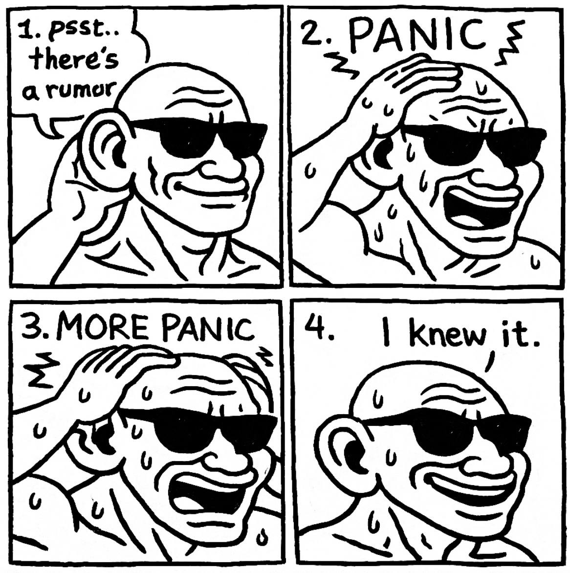 images, 4chan style edits, job scenarios, finance memes and parody panels.