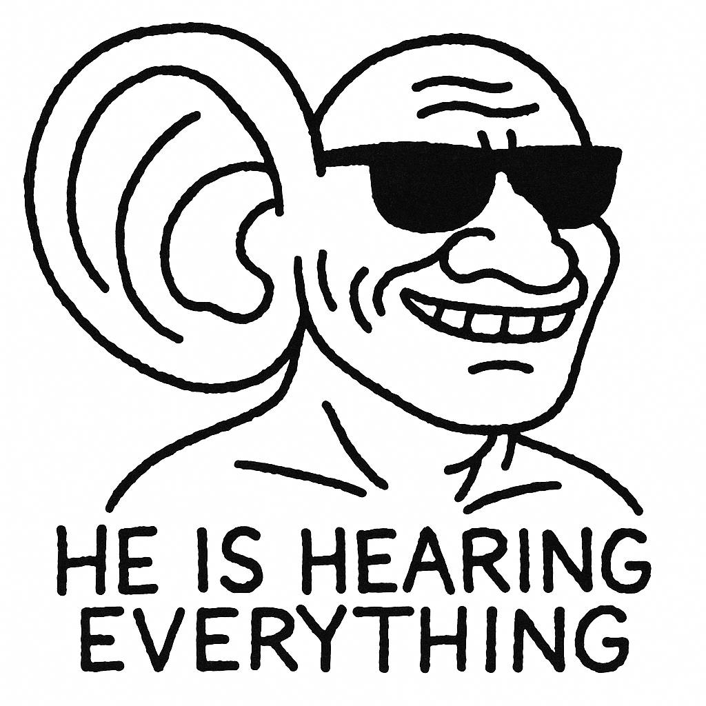 In many edits, Hearing is placed in the background of a scene, smugly listening,