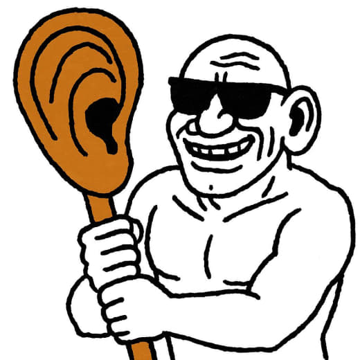 Hearing is a hand drawn cartoon character recognizable by his large curved ears,
